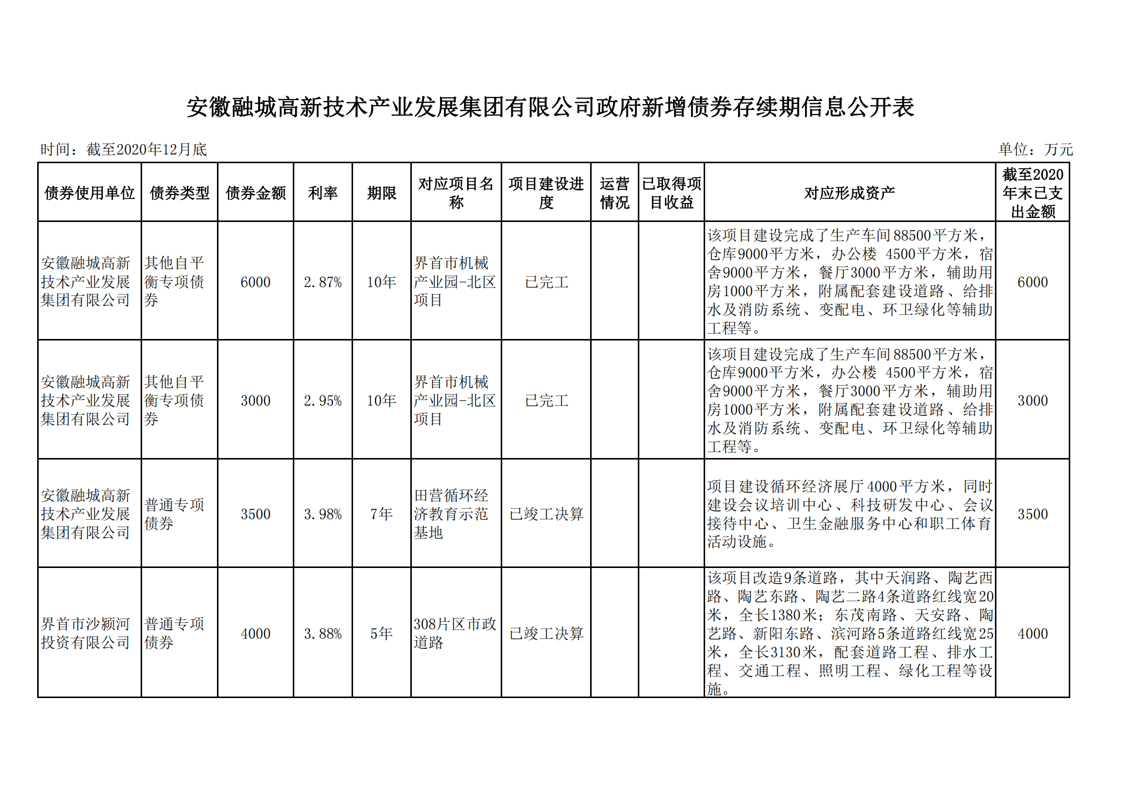 安徽融城高新技術(shù)產(chǎn)業(yè)發(fā)展集團(tuán)有限公司政府債券存續(xù)期信息公開(kāi)表